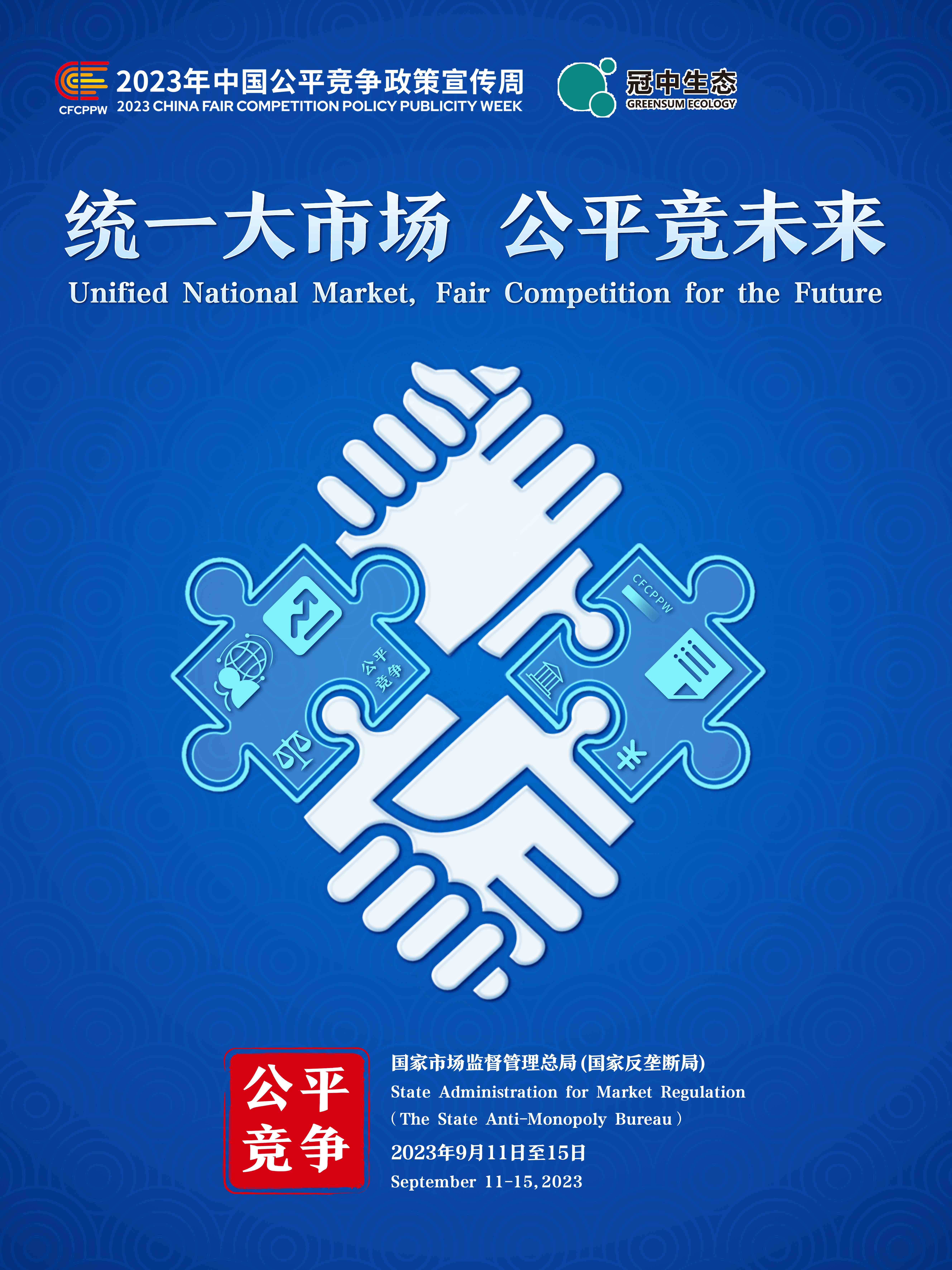 9月11日至15日为2023年“中国公平竞争政策宣传周”,主题是“统一大市场 公平竞未来”,旨在提升全社会公平竞争意识,培育和弘扬公平竞争文化,营造公平竞争的市场环境。