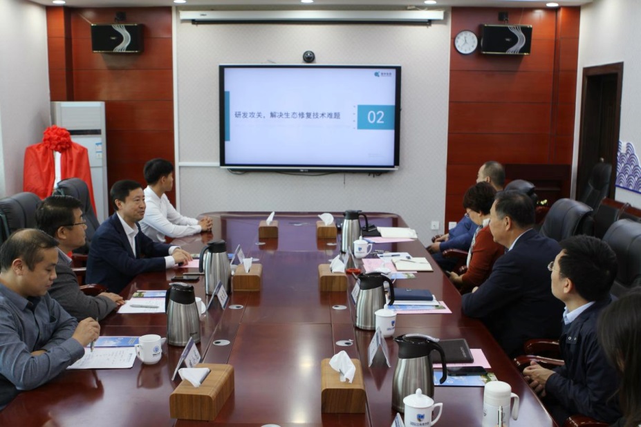 李春林董事长对中国海洋大学提供的校企合作机会表示感谢,对海德学院的办学成果表示肯定,并对公司概况、主营业务、核心技术、课题研究和公司从事生态修复二十余年的经验进行了总结介绍。参观中,李春林董事长表示要以此合作为契机,深入进行产学研协作。