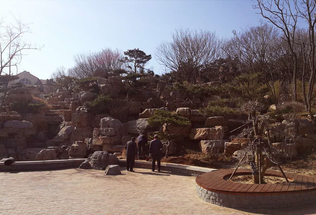 儿童公园环山路路窄车多,施工的同时既不能影响交通,又要确保安全与安静,所以文明施工成了关键。在对假山平台与水系景观的施工过程中,为了确保道路通畅,不吵扰附近居民,冠中生态合理安排工序,把景石材料进场、卸车全都安排在夜间。受公园场地的限制,材料不能直接堆放在公园里,为了不影响群众游玩,进场的材料都是先存放在附近其他公司院内,随用随运,这样虽然增加了施工成本,影响了工作效率,但最终做到了施工游园两不误。施工中更是虚心听取群众对假山景石叠放以及水系景观的建议,最终做到了还美于民。这一点一滴都得到了附近居民的赞赏和支持。